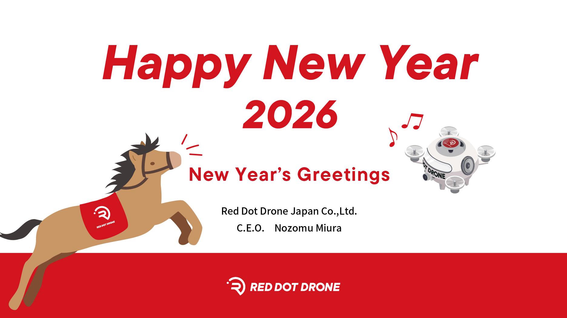 New Year’s Greetings We would like to express our sincere gratitude for your generous support and guidance over the past year. In the coming year as well, we are strongly committed to realizing people’s desire to “see and hear” through technology. The potential of drones in the sky continues to expand, offering vast and exciting possibilities. At Red Dot Drone Japan, we will strive to bring these possibilities into real-world applications and contribute meaningfully to society. We sincerely look forward to your continued support in the year ahead. C.E.O. Nozomu Miura